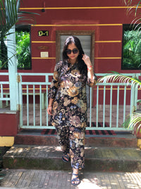 Knee Length- Ajrakh Sunflower Black - Cord Sets - Pure Cotton