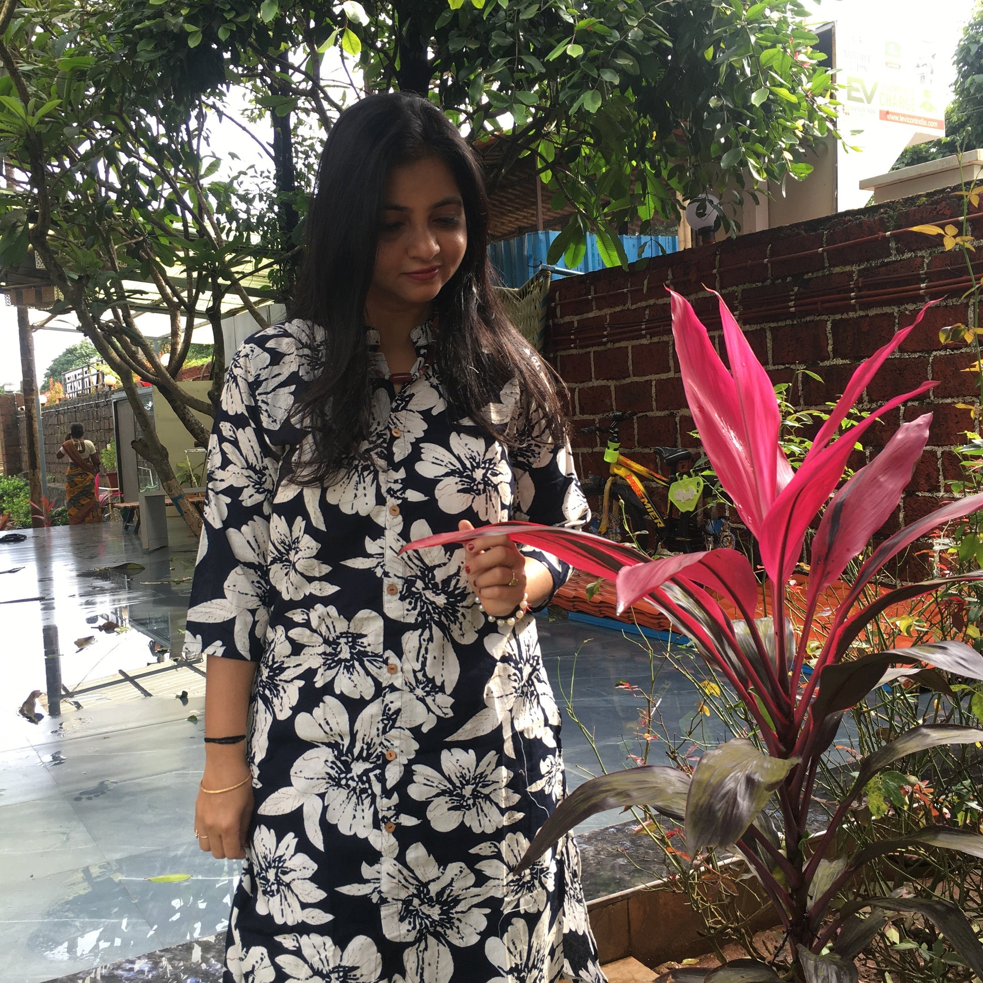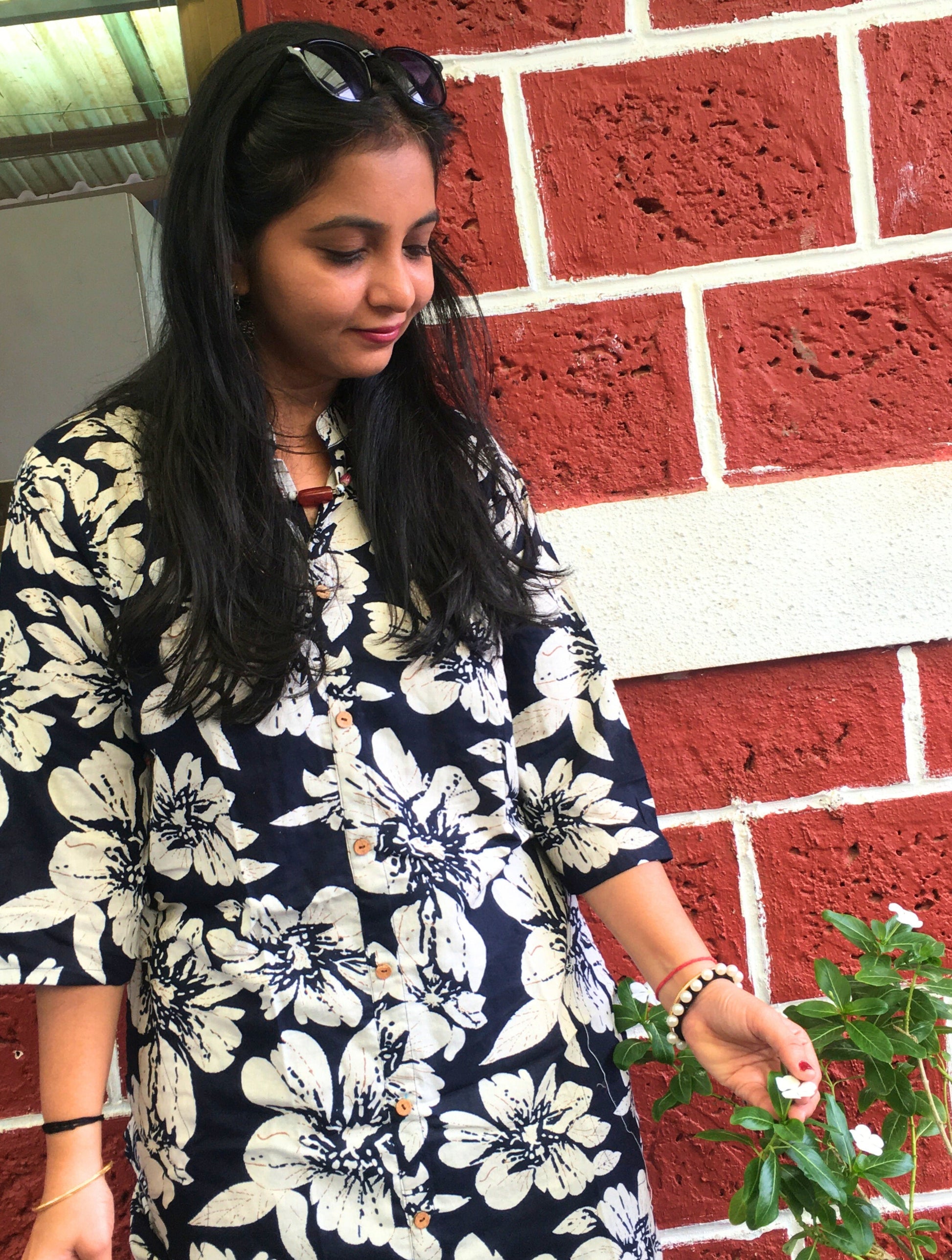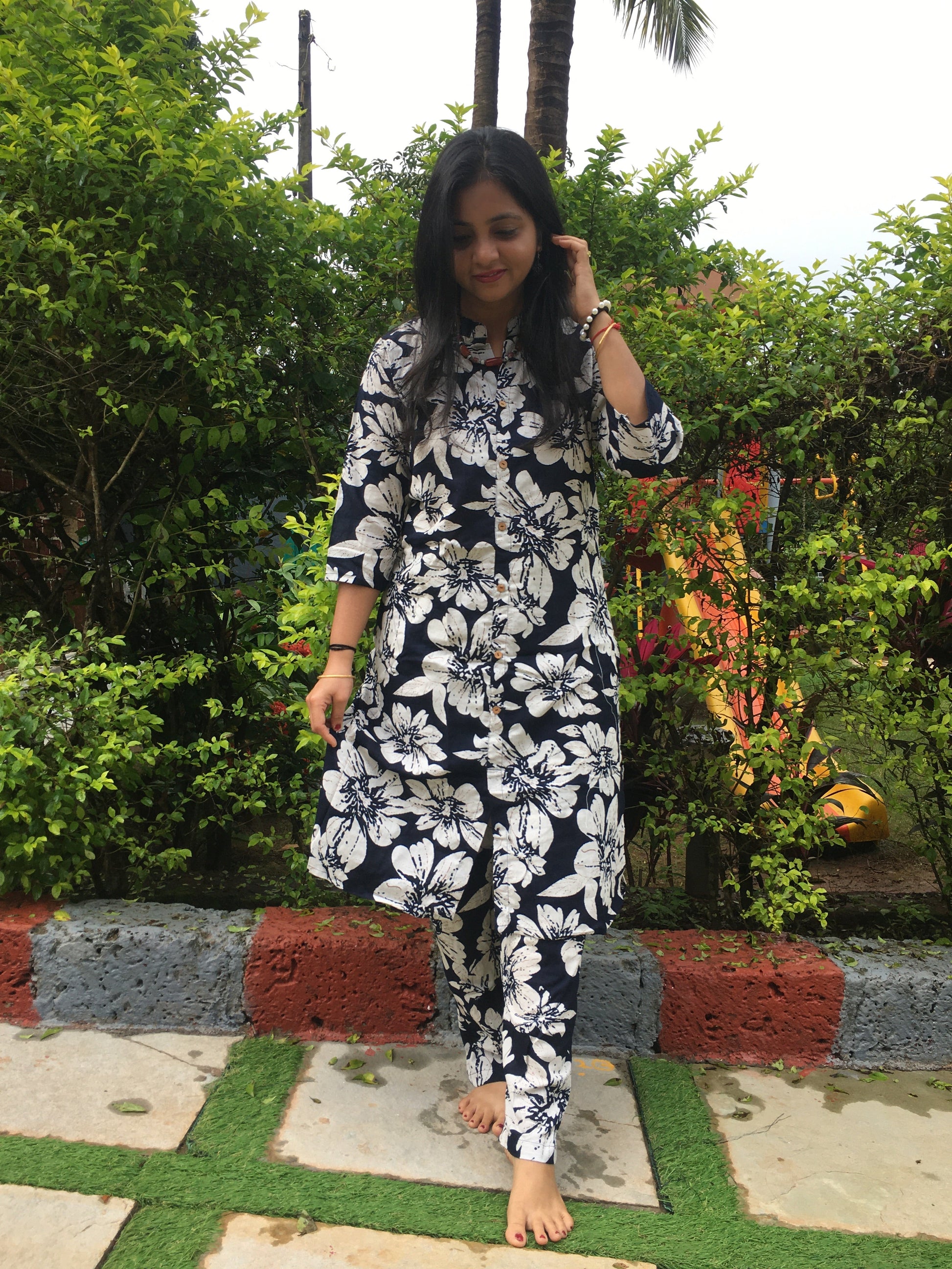 Cord Sets - Hibiscus Navy Blue - Knee Length - Pure Cotton