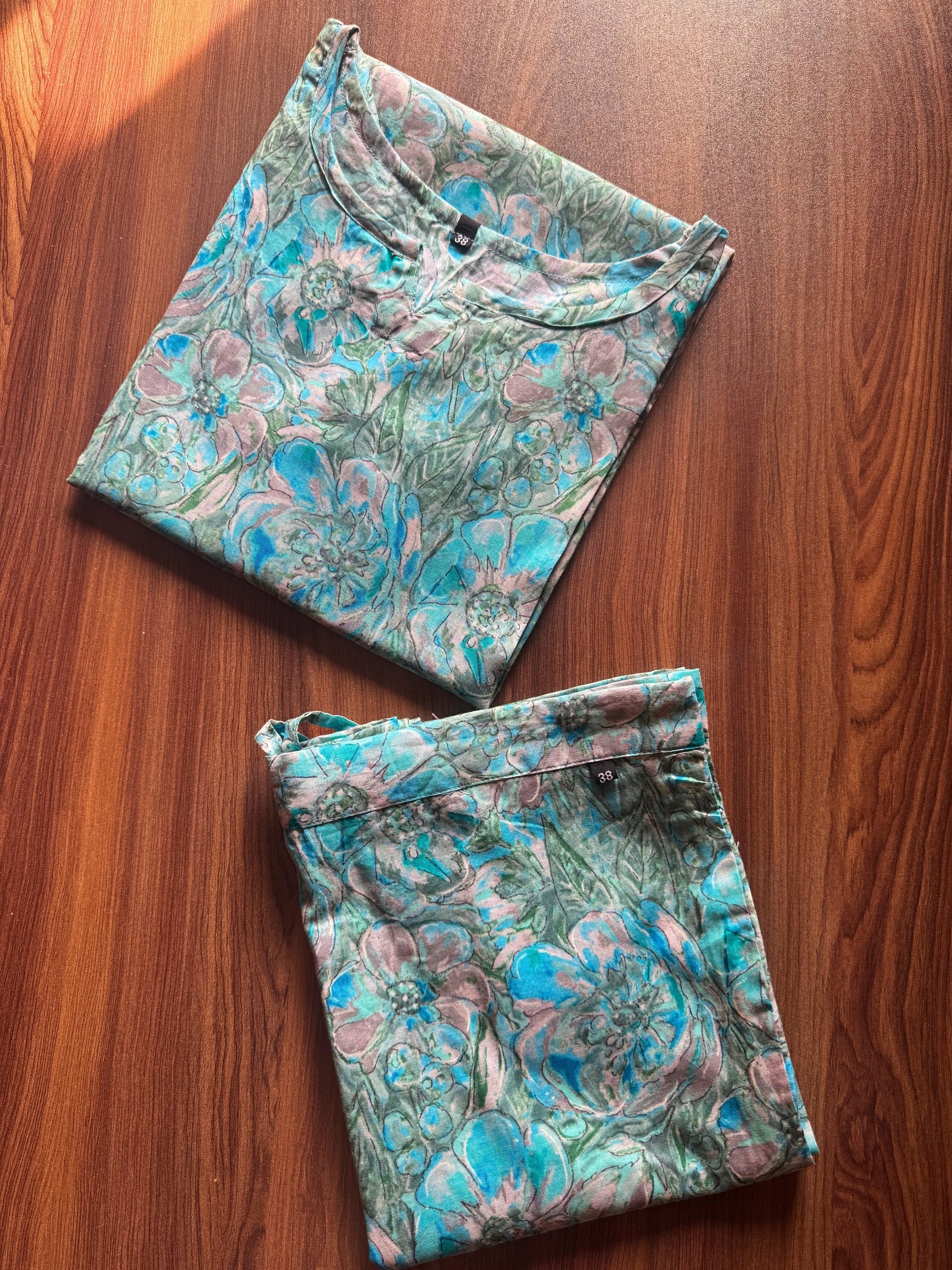 Jasmine Sky Blue White Flower - Cord Set - Pure Cotton