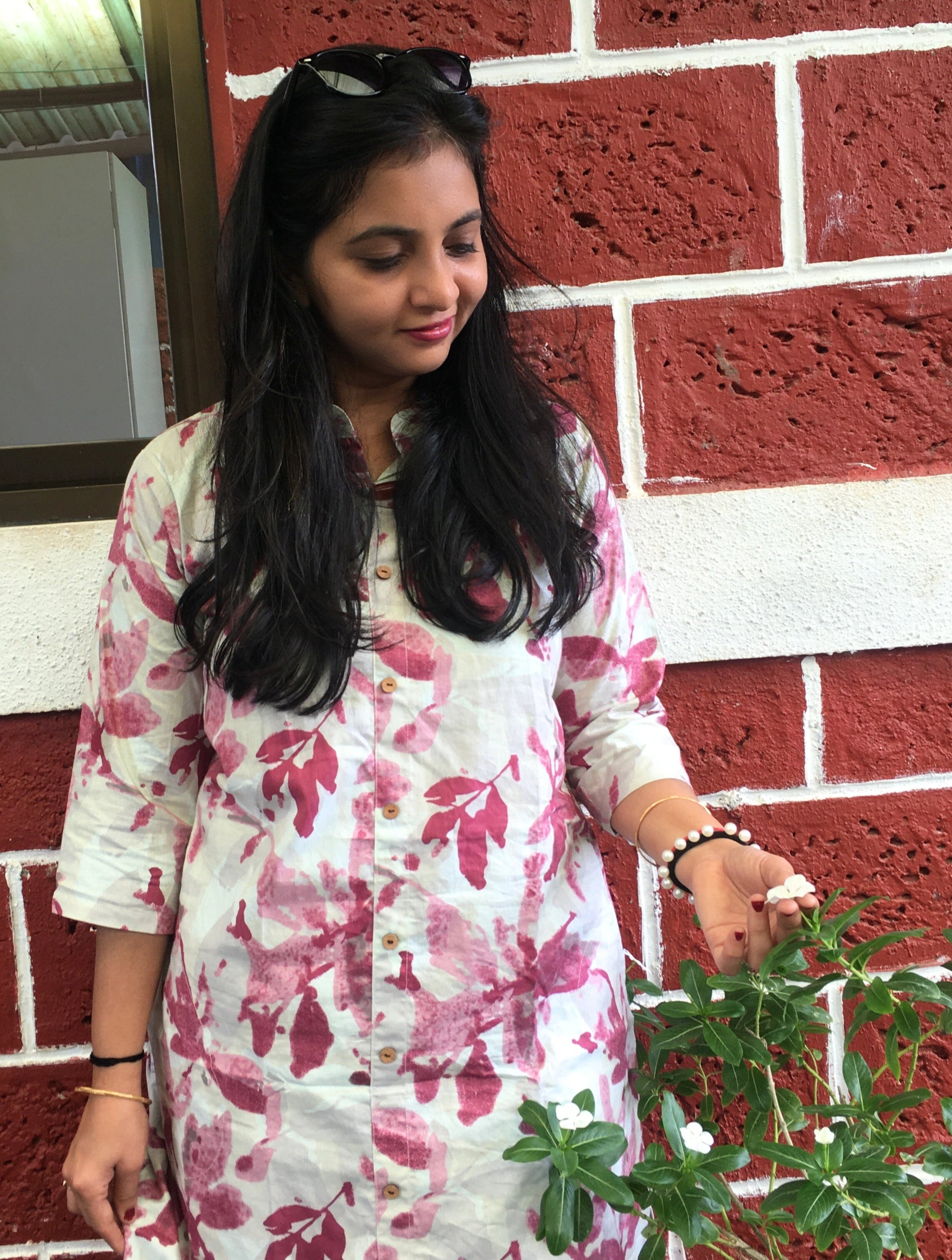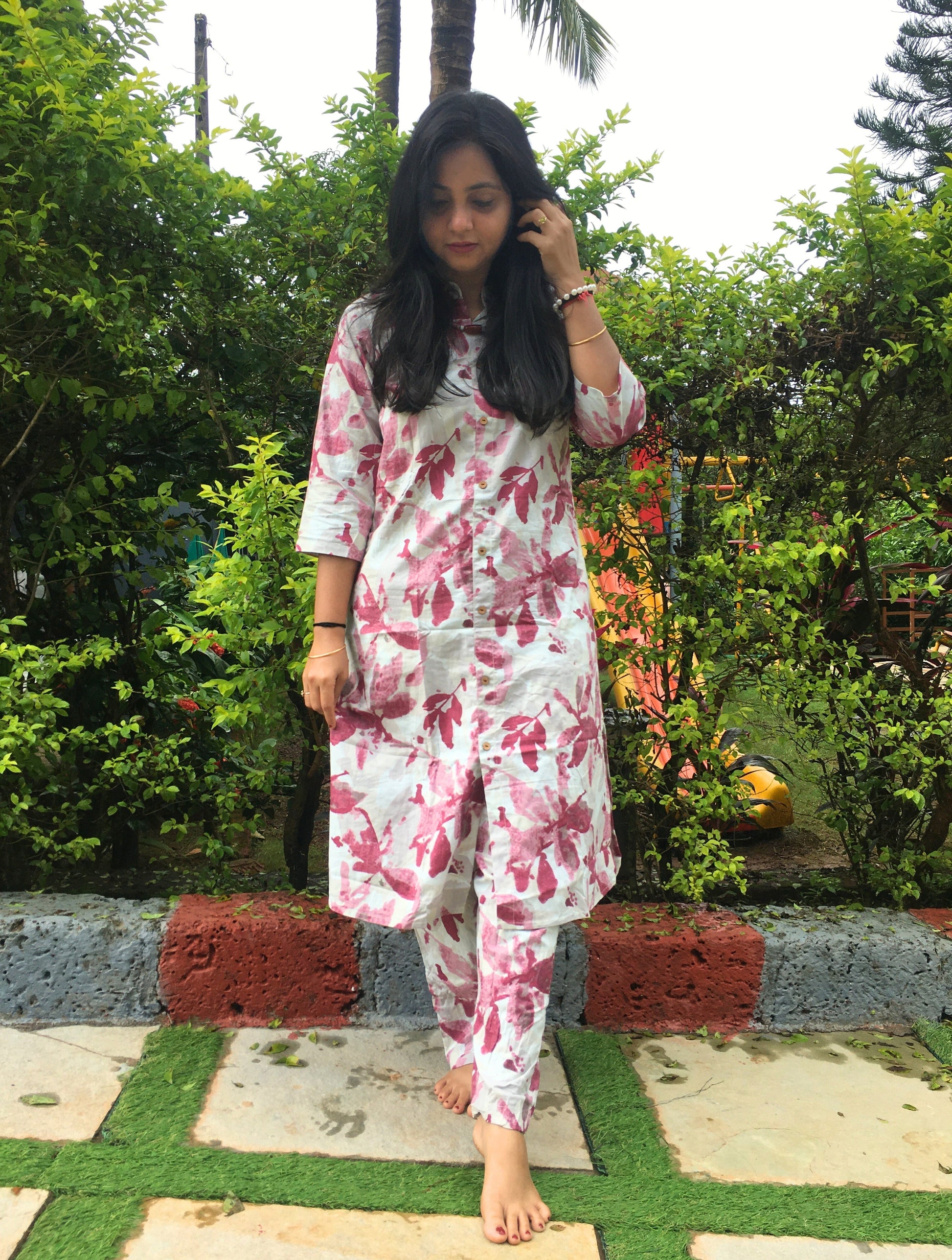 Knee Length - Purple White Petals - Cord Sets - Pure Cotton